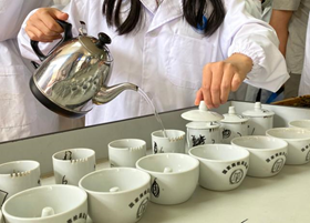 老师与2018级学生探讨茶叶滋味