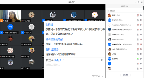 为保障疫情防控形势下我院招生宣传工作的顺利进行,学院成立招生宣传工作小组,精心策划、综合运用新技术和新手段,带来了一场充实而精彩的网络云端宣讲会,也是网络时代推进招生宣传工作一种新的思路。宣讲会上,许多有意向报考的同学都积极提问和询问老师的联系方式,与老师增进了联系。