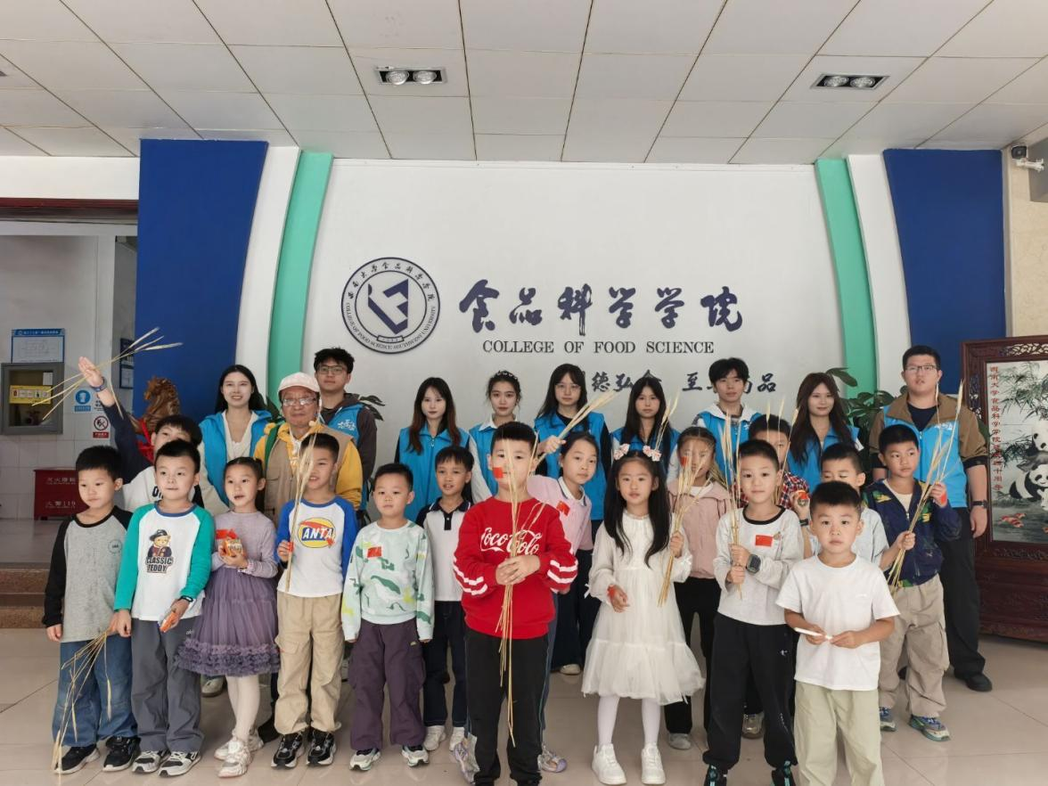 活动最后,全体参与者合影留念。此次主题党日活动将食品专业知识与党员志愿服务深度融合,既提升了支部党员服务群众的责任感与使命感,更在孩子们心中播下了爱粮节粮的种子,营造了珍惜粮食、反对浪费的良好氛围。未来支部将继续立足专业特色,搭建常态化志愿服务平台,为弘扬勤俭节约的传统美德、保障国家粮食安全贡献青春力量。