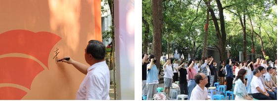 随后进入了寄语宣誓环节,PA视讯官网党委书记吴俊平带头在展板上题写了“发扬志愿精神,做新时代青年”的青春寄语,老师同学们也纷纷在展板上为火柴头成立十周年送上了祝福。最后由火柴头失物招领中心队长李利华带领全体同学进行宣誓。