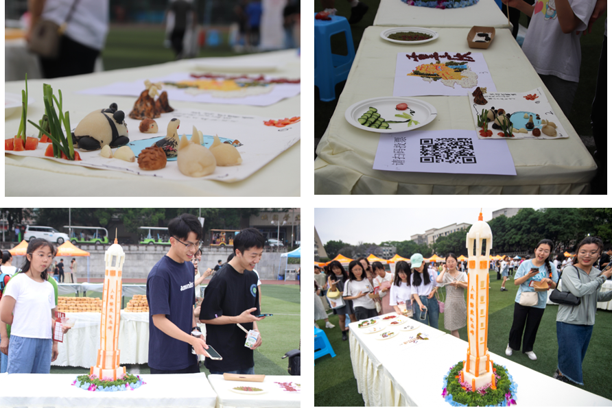 本次活动以“‘食’出川渝新风味 建设成渝经济圈”为主题,深入贯彻落实成渝地区双城经济圈建设、领略川渝文化的精神,以食品博览会的形式,弘扬川渝美食文化内涵。在活动预热阶段,学院学生积极参加拼盘比赛,在使用各式食材在盘中摆出川渝特色图案的过程中,了解川渝地域文化底蕴。