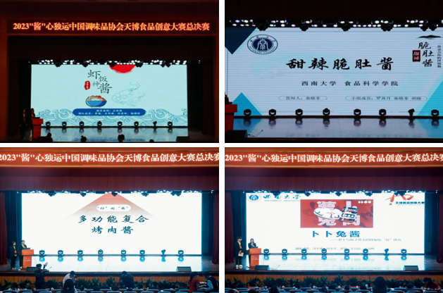 本次比赛以“酱”心独运为主题,前期通过项目策划审查、网络函评、企业专家集中会评、各参赛学院线下线上复试等多个环节,最终共有来自中国农业大学、江南大学、天津科技大学、西南大学、四川大学和扬州大学6所高校的24支队伍依次进行了产品展示与答辩。选手们通过宣传视频与PPT介绍了产品的创新创意、制作工艺、产品开发等内容,介绍结束后,台下评委针对选手的讲解内容进行提问,并提出改进建议。