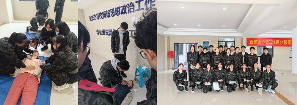 为学习心脏复苏、创伤现场救护等自救互救相关知识,提前演练常见伤情的现场救护及突发事件现场救护等各种急救操作,我院于11月27日至12月19日积极开展了自救互救技能培训学习工作。11月27日至28日下午2:30-3:30,我院共22名学生骨干于学生处106教室进行了两次专项培训。11月29日至12月6日,我院2021级各班级陆续完成了分散军训线上学习并于学生处完成了心肺复苏全员实操培训。培训过程中,各班学生骨干充分发挥了模范带头作用,组织各班参训人员全部统一着军训 装,现场认真观摩学习,高效地完成了心肺复苏实际操作等培训任务。