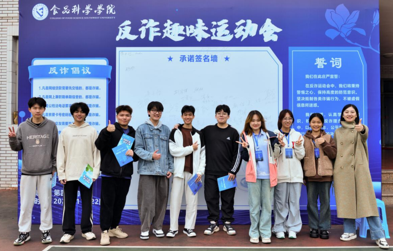 活动伊始,全体同学在主持人的带领下进行反诈宣誓,并在反诈签名墙上签名。同学们承诺坚决抵制各类诈骗行为,认真学习反诈知识,筑牢反诈防线。随后,本次反诈趣味运动会正式拉开帷幕。