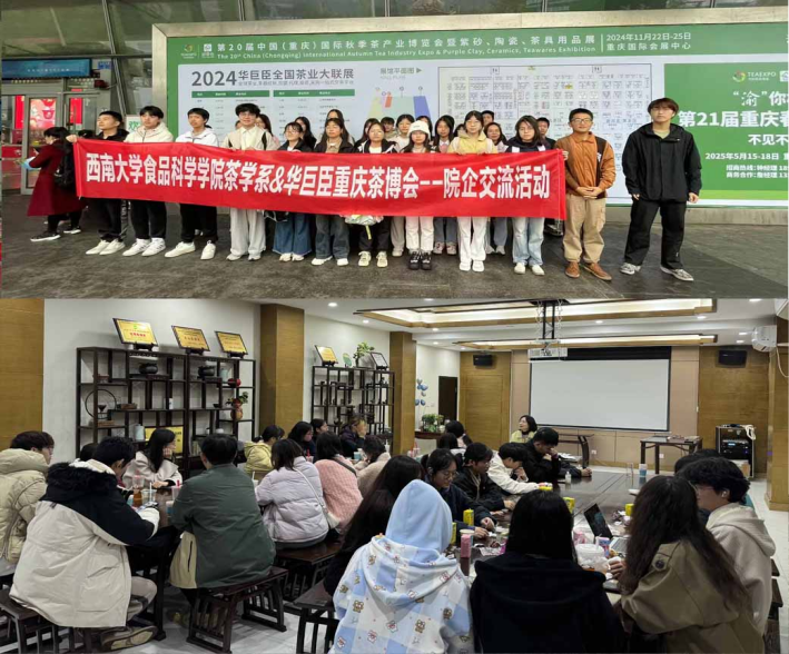 11月24日上午陈应娟老师和孙康老师带同学们参观了第20届中国(重庆)国际秋季茶产业博览会暨紫砂、陶瓷、茶具用品展,在展会上同学们尽情品尝了各类特色茶叶和相关制品,了解了茶相关产业的发展;晚上,陈老师继续与同学们开展了茶叶的品鉴活动,并给同学们定制了带纪念意义的个人品茗杯,希望同学们能知茶、爱茶、践茶,期间分享了茶学专业涉及的领域和就业形势,不仅给同学们树立了学习目标,也为同学们找到了专业学习的方向。