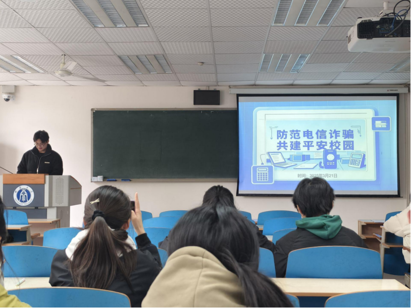 接着,班长与团支书剖析了学院学生近期受骗案例的具体经过,并重点讲解了冒充亲友或公检人员诈骗、网络购物类诈骗与机票退改签诈骗三类高发骗局。他们通过情景模拟视频揭露了“AI亲友”诱导转账、伪造“通缉令”威胁转账等作案手法,并强调了“不轻信、不转账、不透露个人信息”的应对原则。