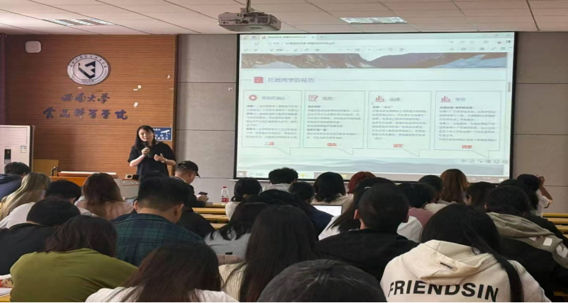 会上,食品科学与工程专业系主任邓丽莉老师、食品质量与安全专业系主任索化夷老师、包装工程专业系主任徐丹老师分别围绕考研备考策略作专题分享。他们从院校选择、复习方法、时间管理等方面提出具体建议,并强调“坚持与效率并重”的重要性,同时针对求职技巧、简历优化、面试准备等内容进行讲解,提醒同学们“主动出击,把握秋招黄金期”。