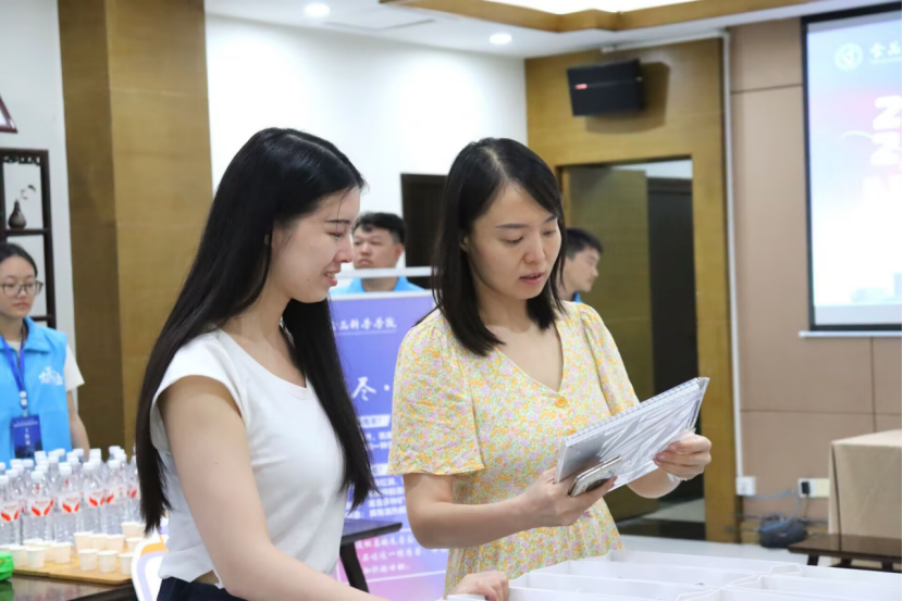 学院内,“欢迎新同学”“我爱食品院”等展板条幅,“不听、不信、不转账”“谨防电信诈骗”等方格纸构成的反诈走廊,带名字的小蛋糕、现泡的老鹰茶、丰富多彩的打卡点、带学院特色的大礼包,营造出了暖心的迎新氛围。