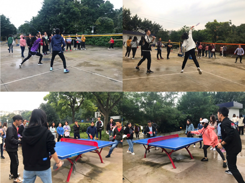 本次运动会共分为八个小组,分别在九个项目上展开角逐。一大早,天空飘着绵绵秋雨,但同学们的热情丝毫不减。伴随着激烈的乒乓球和羽毛球比赛的开始,运动会正式拉开帷幕。紧随其后的螃蟹运西瓜、抛绣球、合力吹气球比赛更加精彩绝伦,参赛者都为自己小组的荣誉而拼搏。“翻滚吧!大雪球”、“奔跑吧!企鹅”等项目更是充分展现了小组成员之间的团结互助,组员之间的彼此信任和默契配合让人惊呼不已。团体项目同心协力和拔河比赛更是将整个运动会推向了高潮,“团结就是力量”的运动精神在这里得到了最好的体现。