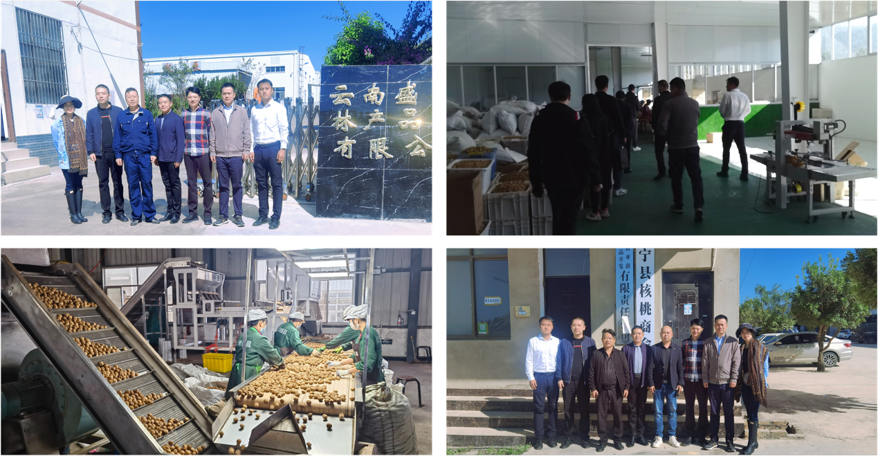 服务团一行深入核桃生产企业,全面调研当前昌宁核桃加工面临的技术难题,对企业工人及技术人员进行现场指导,并与企业负责人就鲜核桃保鲜及核桃精深加工关键技术等进行了交流座谈,为核桃产业转型升级发展提供科学指导与理论支撑。