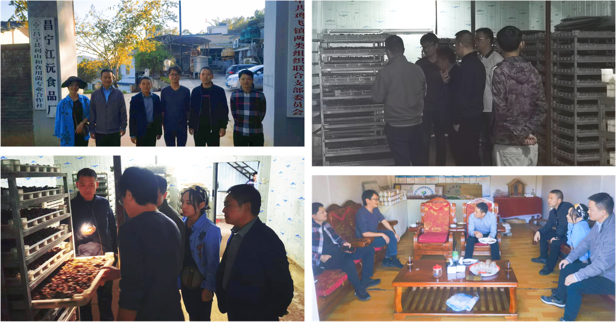 为深入推进昌宁县定点帮扶工作,2022年11月1日至3日,由PA视讯官网碳水化合物食品资源开发与利用团队常徽、叶发银、雷琳和陈嘉4位老师组成的服务团赴昌宁县开展核桃及食用菌产业调研及生产指导工作。