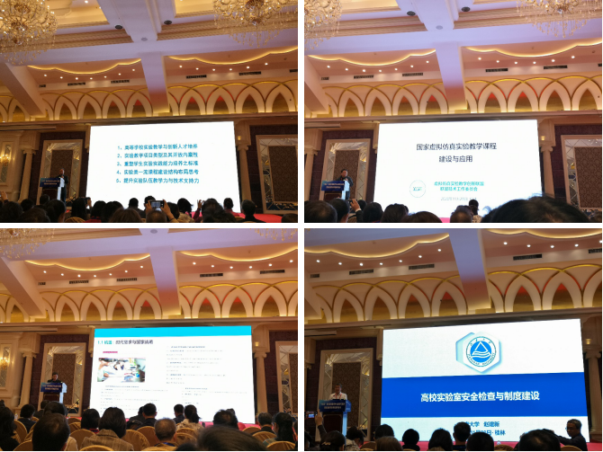 东南大学实验室与设备管理处处长熊宏齐从高等学校实验教学与创新人才培养,实验教学项目类型及其开放内禀性,重塑学生实验实践能力培养之标准,实验类一流课程结构布局思考,提升实验队伍教学力与技术支持力方面介绍了新时代高校实验室教学能力建设的宝贵经验。虚拟仿真实验教学创新联盟执行长秘书王宏宇讲解了虚拟仿真实验教学项目建设情况、疫情期间虚拟仿真实验教学项目的应用情况和实验教学课程建设发展趋势,强调在虚拟仿真实验教学课程建设时应重视课程的有效性、科学性、系统性和广泛性。华中师范大学副校长李鸿飞从时代需求和国家战略方面强调了教育信息化的重要性,提出高校应该充分发挥信息技术优势,构建信息时代以学生发展为中心的高校人才培养体系。江南大学食品学院食品生物技术中心主任赵建新以“高校实验室安全检查与制度建设”为题介绍了教育部对高校科研实验室、教学实验室现场安全检查的情况以及江南大学实验室安全管理制度实践。